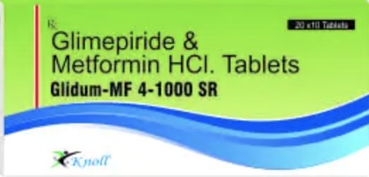 Generic Glimepiride 4 mg + Metformin 1000 mg is a prescription combination used when adults with type 2 diabetes mellitus need stronger glucose lowering.